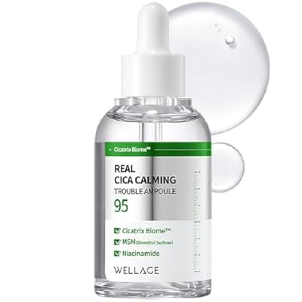 Save 10% off on WELLAGE Real Cica Calming Trouble Ampoule – Korean Skincare Soothing Serum, Madecassoside Centella Asiatica Panthenol Niacinamide, Relief Redness, Sebum Control, Improves Blemishes, 1.69 fl.oz