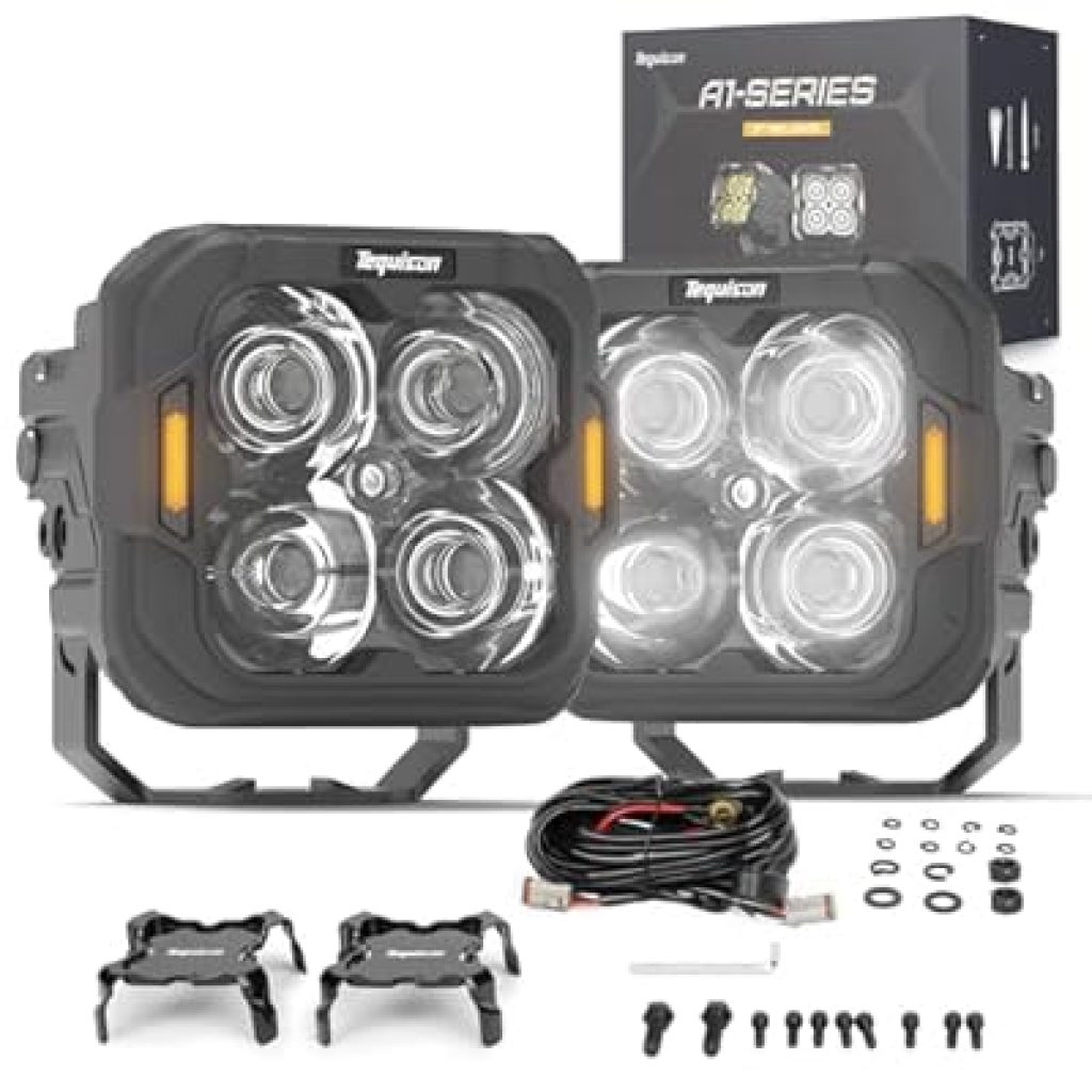 🚙【600% Brighter Off Road Lights】Tequison off road lights provide high focus, long range visibility with a newly upgraded 600% increase in luminous flux, a 6500K white LED spotlight and 3000K amber DRLs that create an 80° white spot beam to ensure focused illumination, eliminating blind spots and maximizing driving safety.