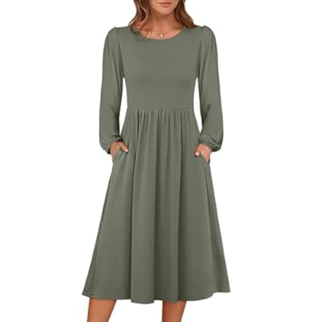 Save 40% off on ANRABESS Women Long Sleeve Midi Dress Crewneck 2025 Fall Fashion Casual Flowy A-Line Long Dresses Vacation Outfit with Pocket