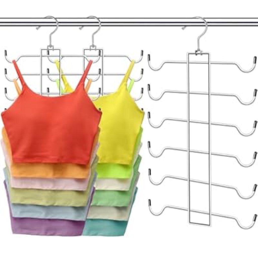 Save 40% on Tank Top Hanger, 6 Tier Space Saving Bra Hangers, Closet Organizers and Storage, Dorm Room Essentials for Girls, Organization for Camisoles Sports Bras Strappy Dress Swimsuits Ties, 2 Pack