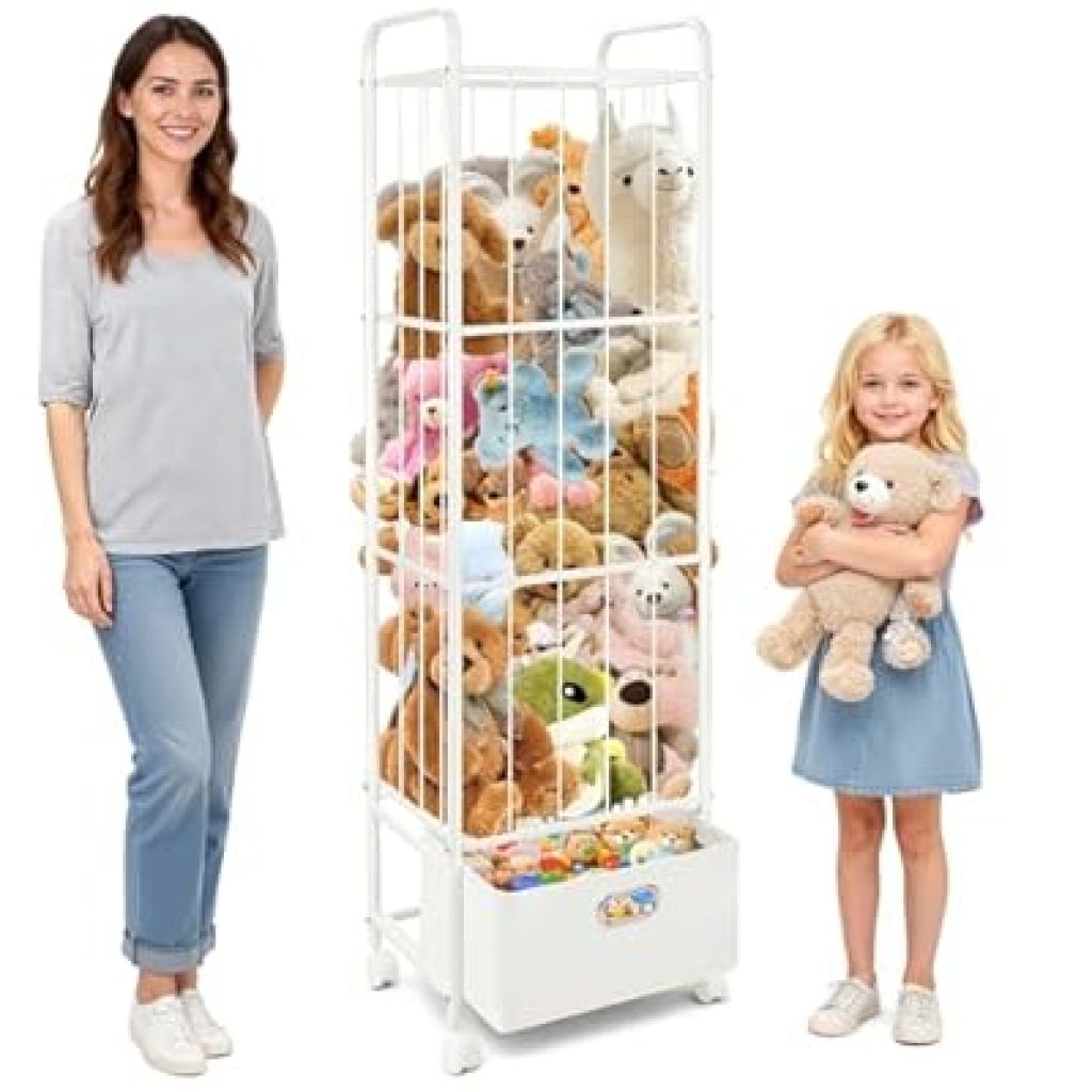 Save 50.0% on Puppiluv Stuffed Animal Storage, Metal Stuff Animals Zoo Holder with Fabric Drawer and Wheels Tall Vertical Plushies Toy Organizer Plush Storage Cage with Elastic Band for Nursery Playroom Corner