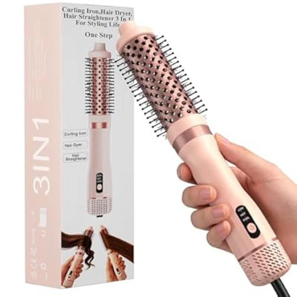 Save 50% off on 3-in-1 Hair Straightener Waves Curling Iron for Short & Long Hair Blow Out Dryer Brush Comb | Large Professional Salon Styling Tool Gift for Women,Men Hairstyles,Gift for Men Women Teen