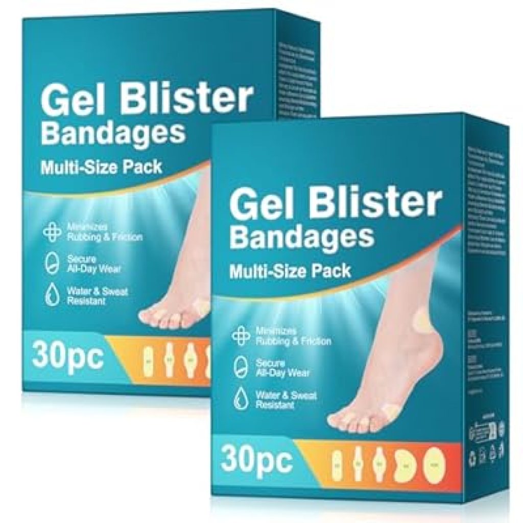Save 50% off on 30PCS Hydro colloid Gel Blister Bandages Pads, Multi-Size Waterproof Adhesive Blister Bandages, Waterproof Blisters Pads & Blisters Cushions for Heel, Toe & Foot, 2Pack