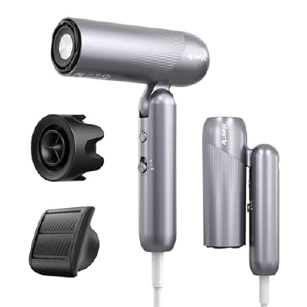 【MAGNETIC ATTACHMENTS】This travel hair dryer comes with both an anti-frizz and a fast-drying nozzle that magnetically snap on and off, providing a hassle-free alternative to traditional clip-on designs.