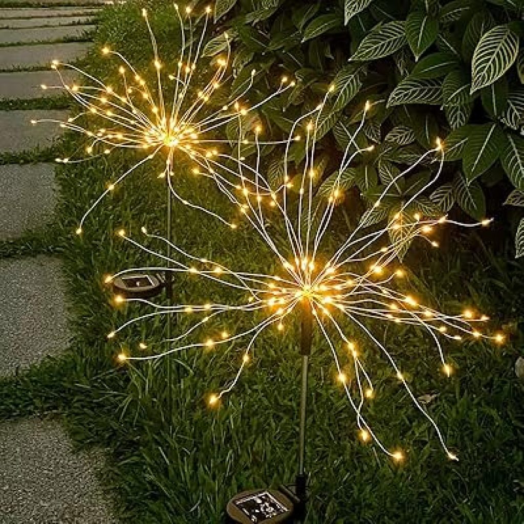 Save 50% off on Solar Firework Lights 2Pcs Garden Lights Outdoor Waterproof, 120 LED with 8 Modes Twinkling and Steady-On, Festive days Starburst Lights for Path, Patio, Yard (Warm White)