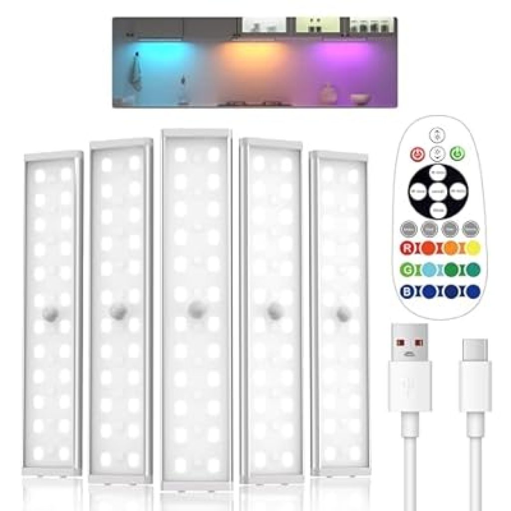 Save 50% off on Under Cabinet Lighting,Rechargeable Motion Sensor Light Indoor Night Lights with Remote,58LED RGB under cabinet lights Bar,15Colors Wireless Under Counter Light Closet Lights for Kitchen,5pack